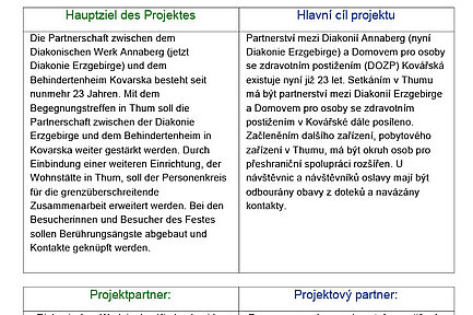 Setkáním v Thumu má být partnerství mezi Diakonií Erzgebirge a Domovem pro osoby se zdravotním postižením v Kovářské dále posíleno. Začleněním dalšího zařízení, pobytového zařízení v Thumu, má být okruh osob pro přeshraniční spolupráci rozšířen.
