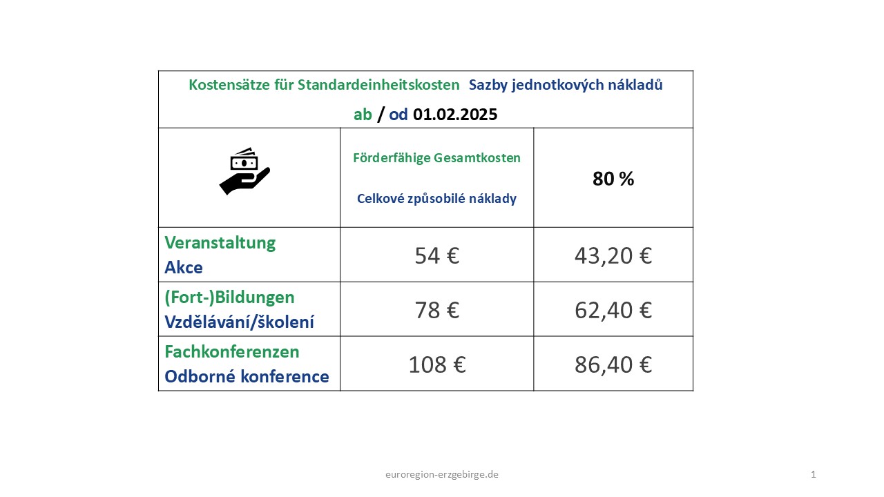 Für Begegnungsprojekte mit nachweisbarer Teilnehmerzahl werden Standardeinheitskosten verwendet - festgelegte Beträge, die für jeden Tag, den eine Person an einem grenzübergreifenden Projekt teilnimmt, angewendet werden. Diese Pauschalbeträge decken alle Kosten ab, die mit der Organisation und Durchführung des Projekts verbunden sind, wie zum Beispiel Veranstaltungsraummiete, Materialien und Verpflegung der Teilnehmenden. Diese Methode vereinfacht nicht nur die Budgetplanung und -verwaltung für die Projektträger, indem sie eine klare Kalkulationsgrundlage bietet, sondern reduziert auch den bürokratischen Aufwand, da detaillierte Kostennachweise entfallen können. Weiterführende Informationen finden Sie in der Anlage 1 zum Gemeinsamen Umsetzungsdokument.